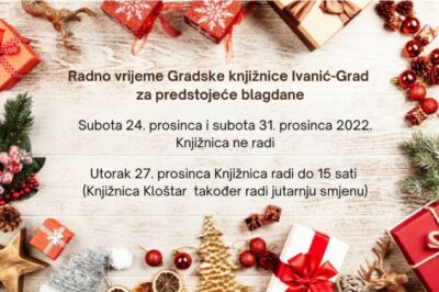 Obavijest o radnom vremenu U petak, 31. listopada 2025. Gradska knjižnica Ivanić-Grad radit će od 8:00 do 12:00 sati, dok će knjižnica Kloštar Ivanić biti zatvorena.